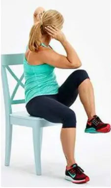 Держась руками за сиденье, поднимите ноги и подтяните колени к груди. Затем медленно и контролируя положение, вытяните ноги вперёд, не касаясь ими пола.