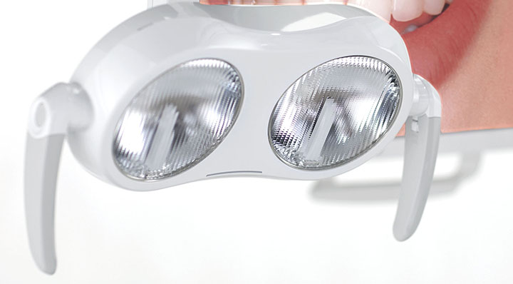 Яркость света настраивается в диапазоне до 50 000 лк. Благодаря широкому световому лучу и превосходной объемности поля зрения (от 55 до 85 см) стоматологу не нужно перемещать лампу во время лечения. Кроме того, можно быстро активировать композитный режим для предотвращения преждевременного отверждения композита.